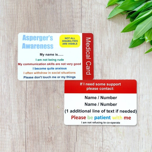 Asperger S Awareness Medical Pvc Card Personalised Etsy